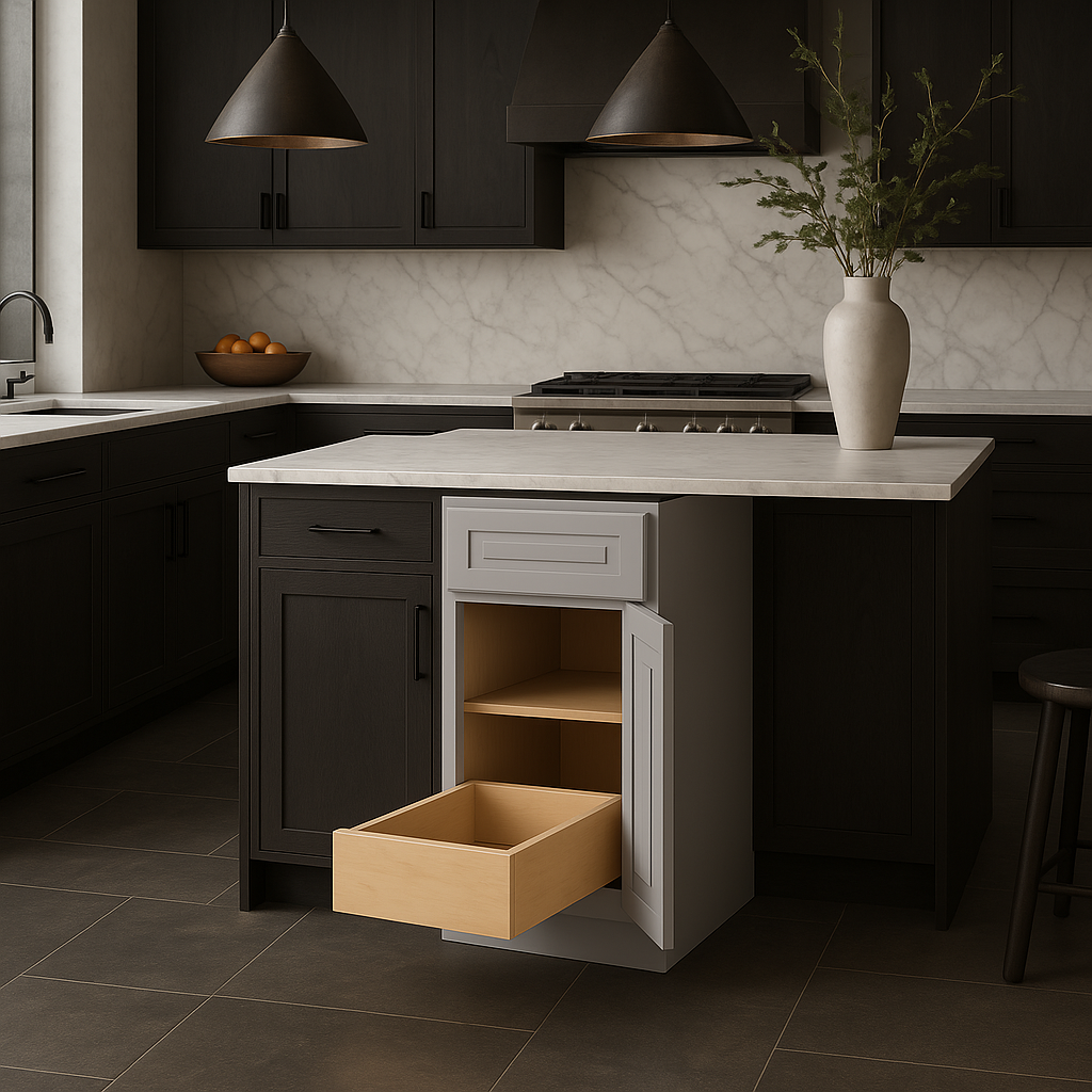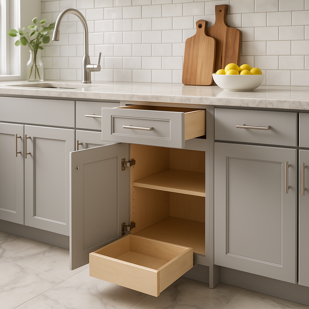 - Transitional Design: Shaker style with decorative drawer fronts to complement modern kitchen aesthetics.