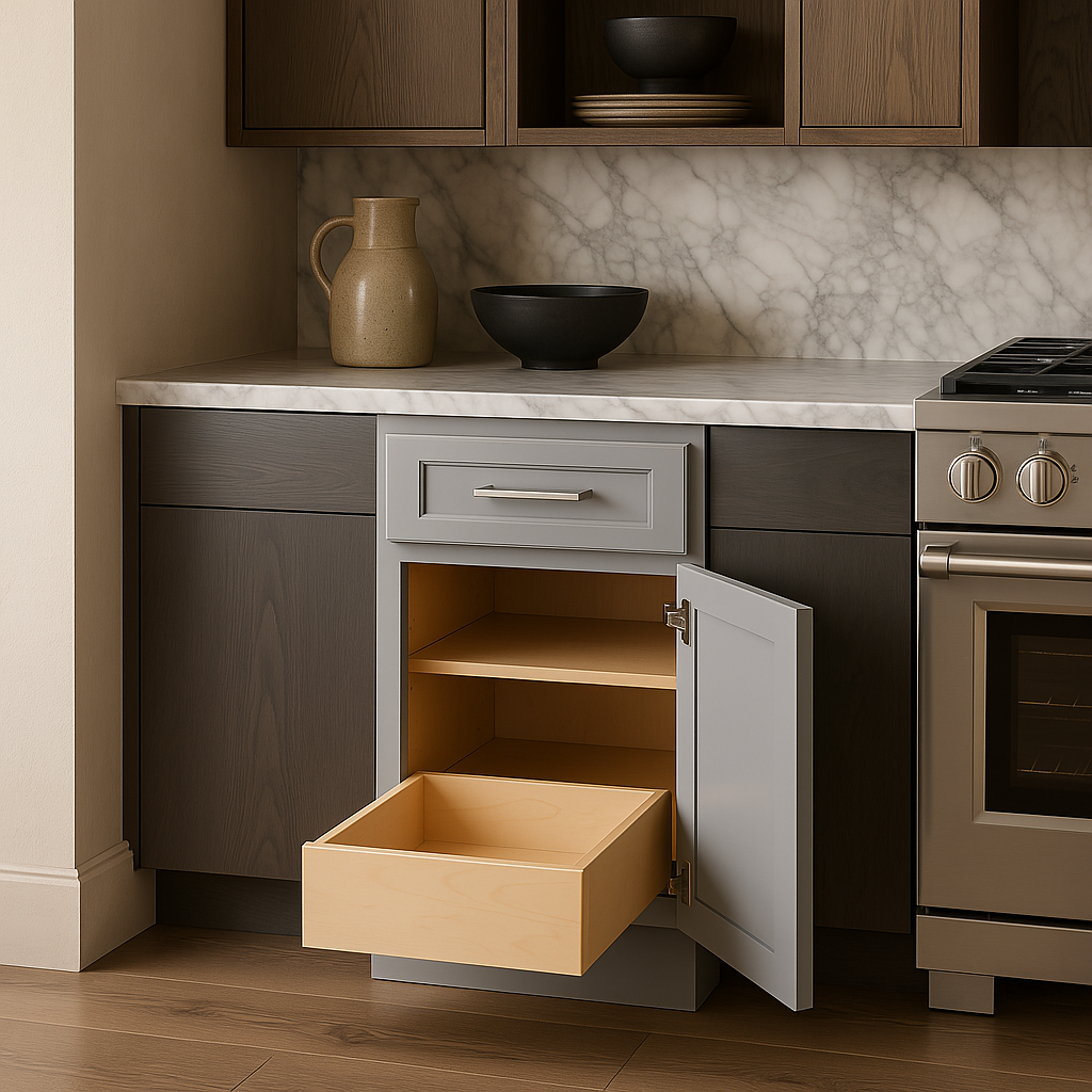 | Kitchen Cabinet Features | Adjustable Shelves, Finished Interior, Full Depth Shelves, Moisture Resistant, Soft Close Doors, Solid Wood, Structural Toe Kicks Included |