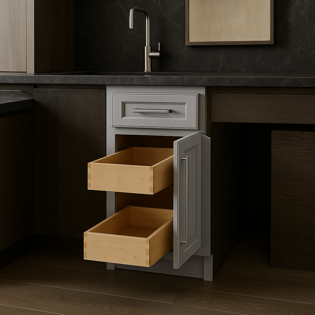 - Functional Design: Equipped with a cutlery tray and two roll-out trays, each capable of holding up to 90 lbs.