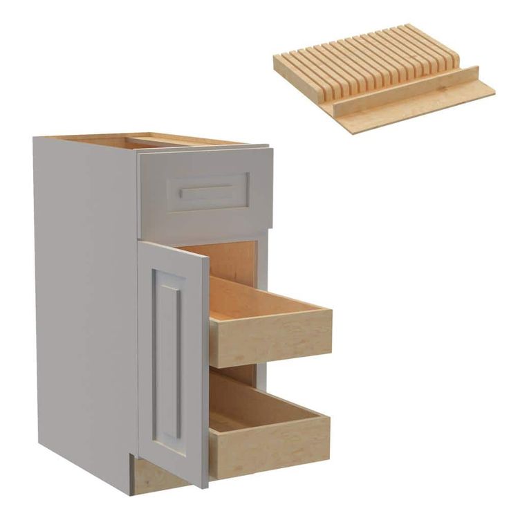 Elevate your kitchen with the Home Decorators Collection's Grayson Base Kitchen Cabinet. Featuring a classic Shaker style in Pearl Gray, this cabinet combines style and functionality with soft-close doors and a built-in knife block tray. Its durable plywood construction ensures long-lasting use, making it a smart investment for any kitchen.