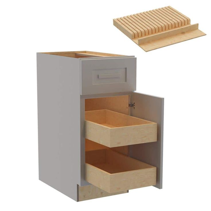 Enhance your kitchen with the Grayson Base Kitchen Cabinet from Home Decorators Collection. Featuring a transitional shaker style in a soft pearl gray, this cabinet brings a touch of luxury to any space. Soft-close doors, dovetail drawer construction, and an integrated knife block showcase expert craftsmanship and functionality.