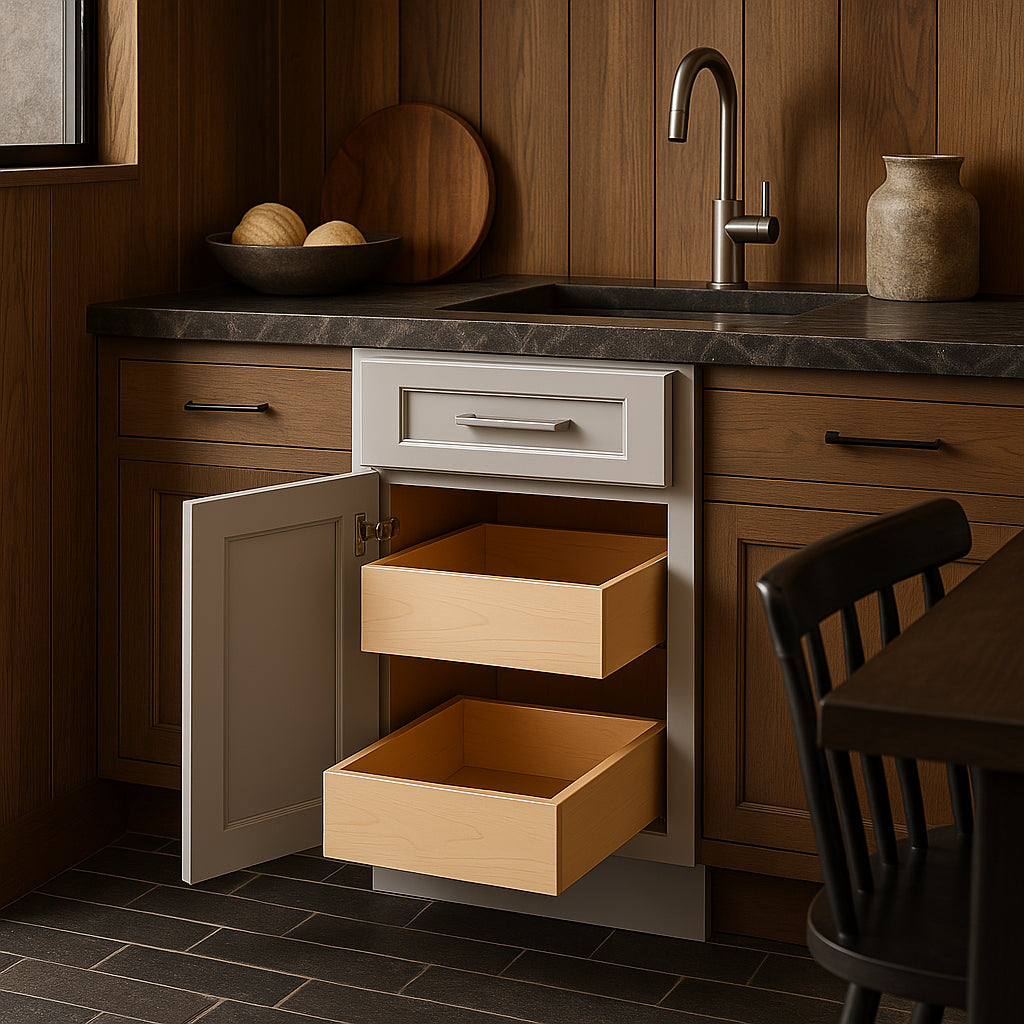- Soft Close Features: Equipped with soft close doors and roll-out trays for smooth and quiet operation.