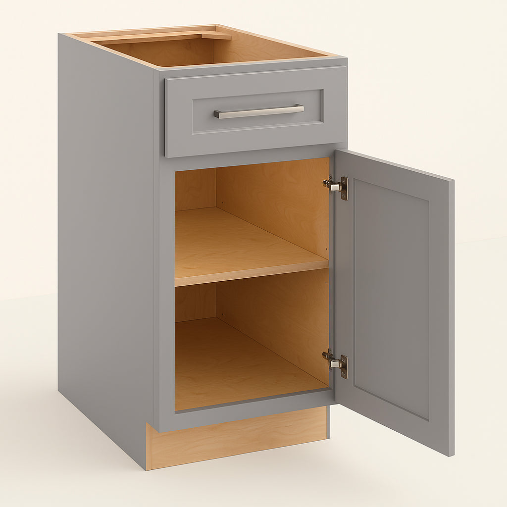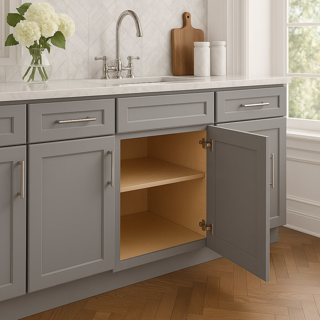 The Grayson Pearl Gray Kitchen Cabinet combines elegant design with practical features, including soft-close doors and drawers, durable plywood construction, and ample storage space. Perfect for enhancing any kitchen's style and functionality.