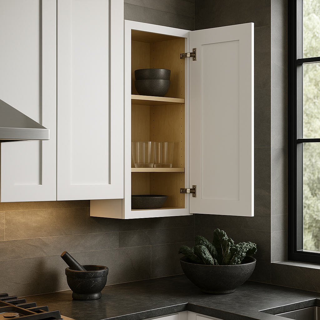 - Transitional Design: Shaker-style doors with square raised panels enhance modern kitchen aesthetics.