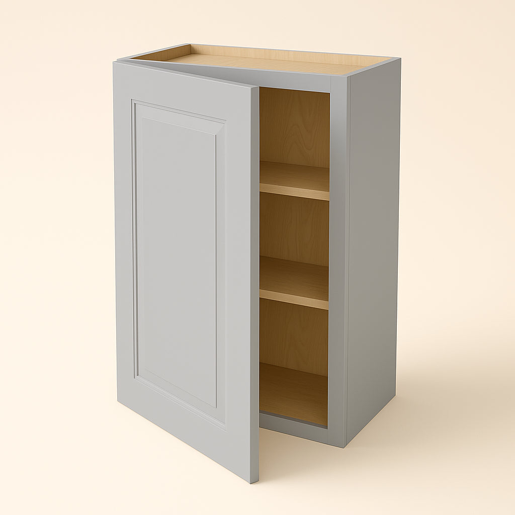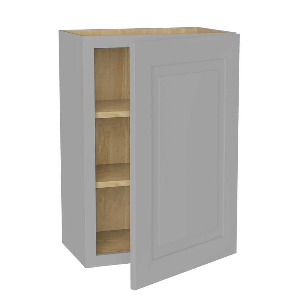 The Grayson Wall Kitchen Cabinet by Home Decorators Collection combines elegance and practicality with its pearl gray finish and soft-close doors. Made from durable plywood, it offers adjustable shelves for customizable storage and a solid back panel for secure installation.