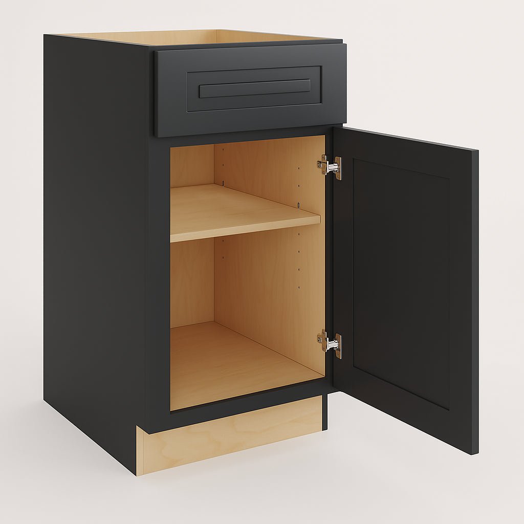 Transform your kitchen into a haven of sophistication with the Grayson Base Kitchen Cabinet in Deep Onyx. Its transitional shaker style and rich finish create a striking visual impact, blending seamlessly with both modern and traditional interiors. Pair it with contrasting countertops or metallic hardware to enhance its luxurious appeal. This cabinet is not just a storage solution but a statement piece that elevates the ambiance of your culinary space.