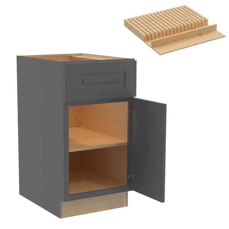 Transform your kitchen with the Grayson 18-inch Base Cabinet from Home Decorators Collection, featuring a sleek Deep Onyx finish. This elegant cabinet combines durability with functionality, including all-plywood construction and a convenient knife block for organized essential storage.