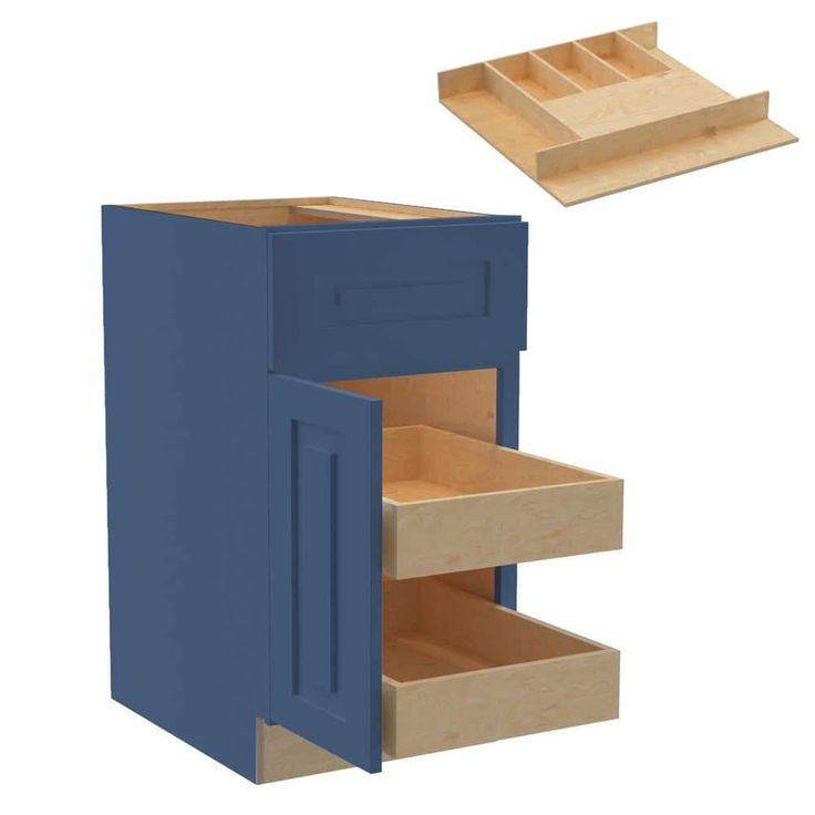 Transform your kitchen with the Grayson Kitchen Cabinet in Mythic Blue, a striking piece by Home Decorators Collection. This assembled plywood cabinet combines durability with elegance, featuring soft-close doors, drawers, and roll-out trays. Its deep blue hue and transitional shaker design elevate your kitchen decor while providing ample organized storage.