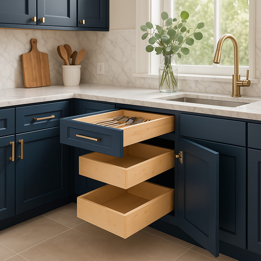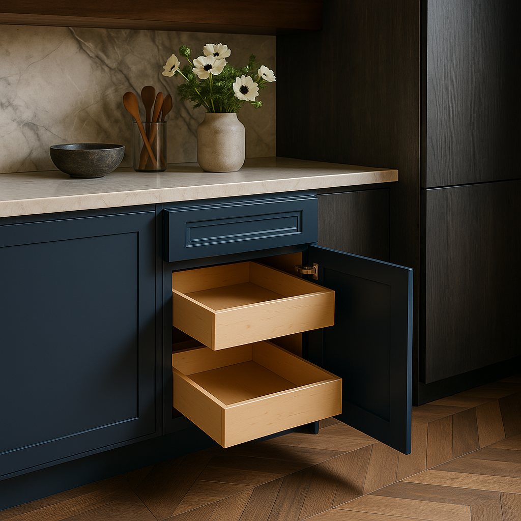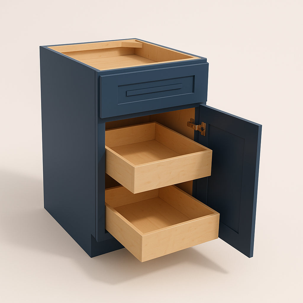 - Roll-Out Trays: Includes two soft close roll-out trays to easily access your kitchen essentials.