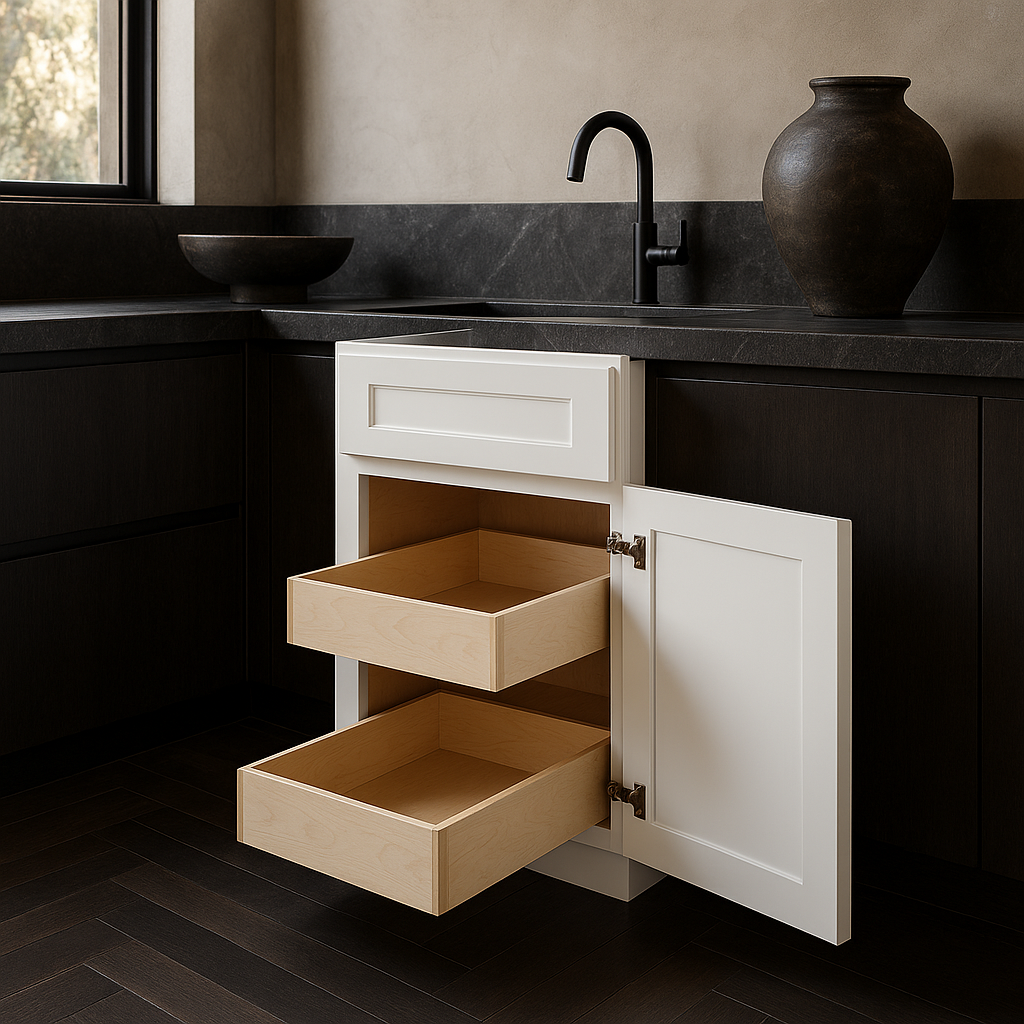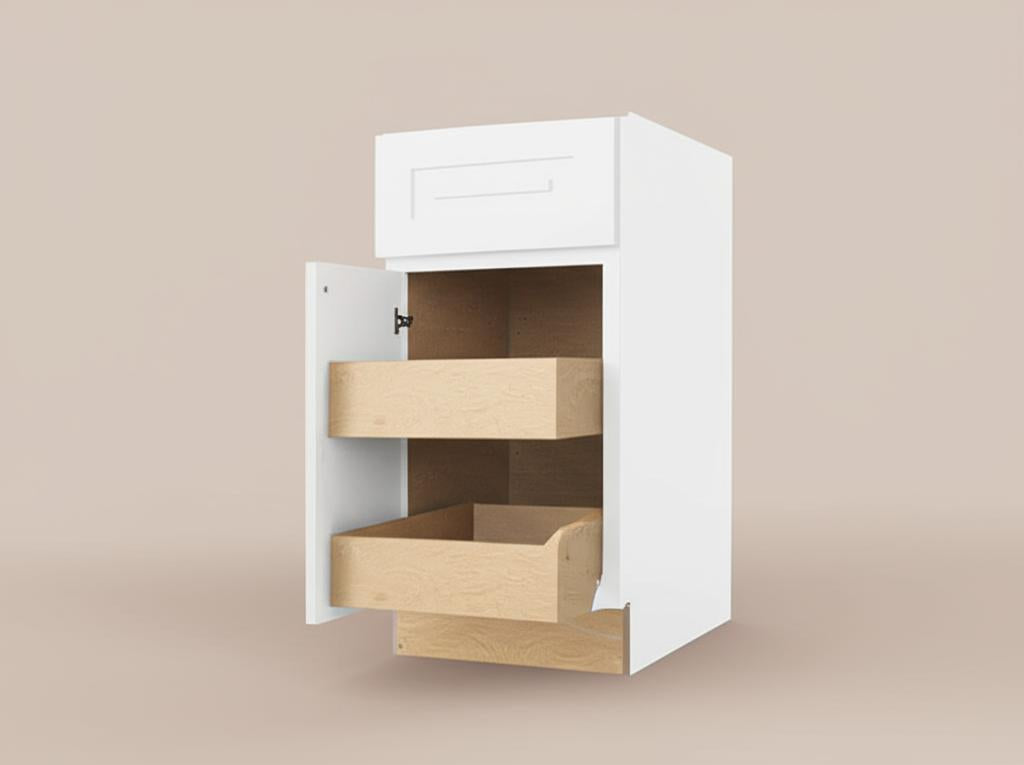 • Storage Efficiency: Comes with two soft close roll out trays and a convenient spice tray insert for optimal organization.