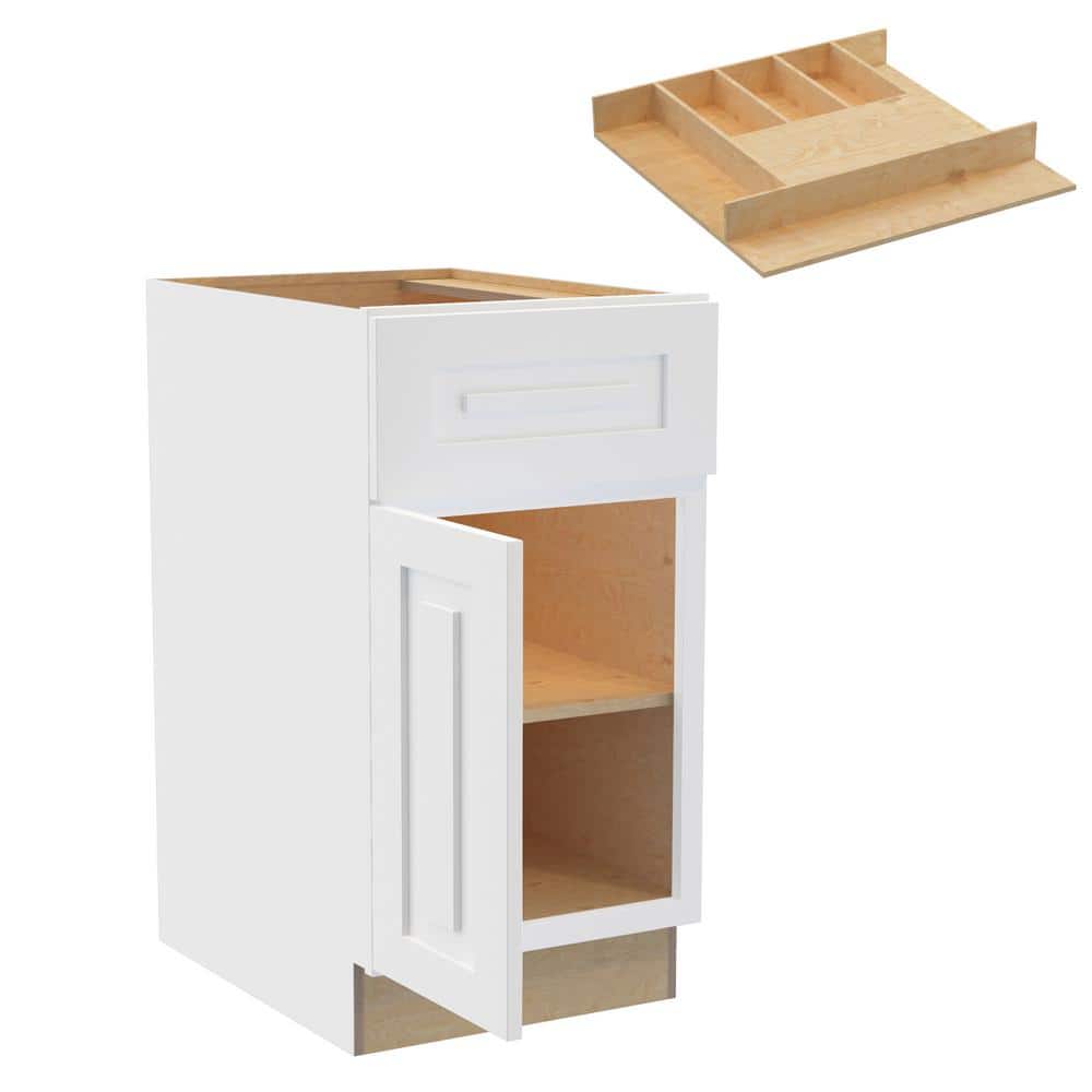 Home Decorators Collection Grayson 18 in. W x 24 in. D x 34.5 in. H Assembled Plywood Base Kitchen Cabinet in Pacific White with Cutlery LH