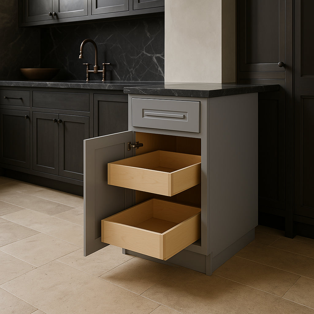 - Dovetail Rollout Trays: Provide organized and easy access to stored items.