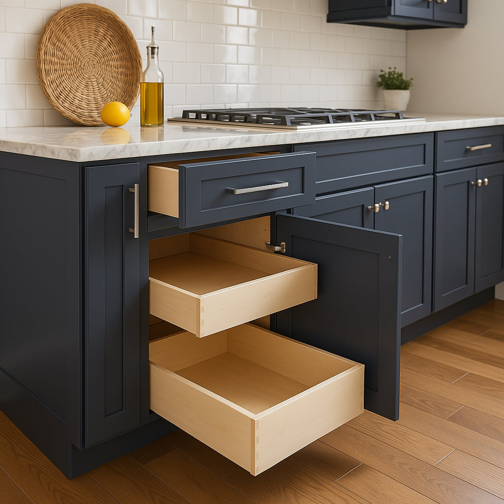 - Soft Close Features: Equipped with soft-close doors, drawers, and roll-out trays for a premium feel.
