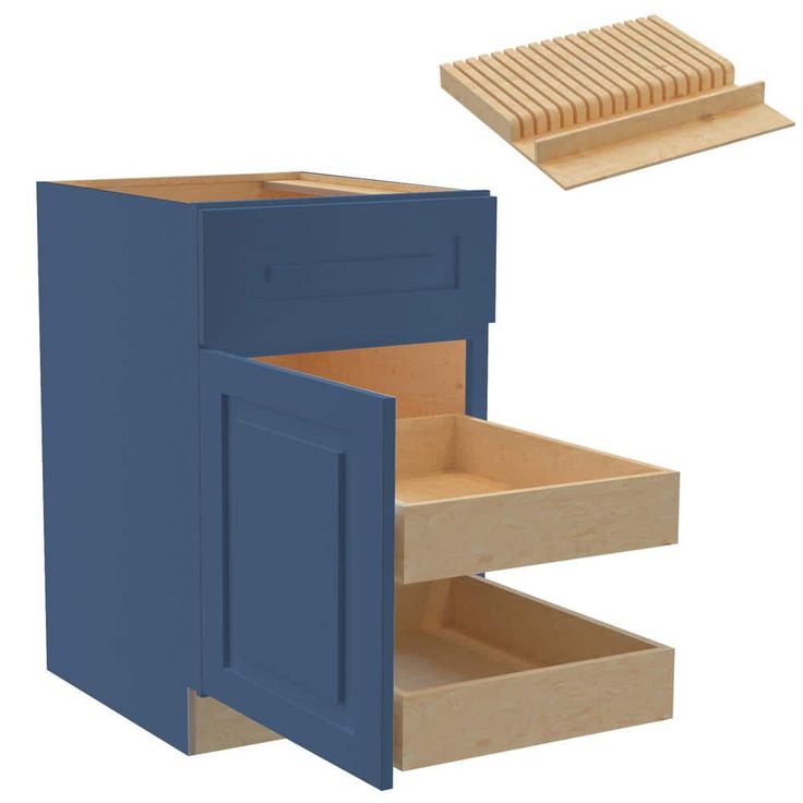 Home Decorators Collection Grayson 21 in. W x 24 in. D x 34.5 in. H Assembled Plywood Base Kitchen Cabinet in Mythic Blue with 2ROT Knife Block LH