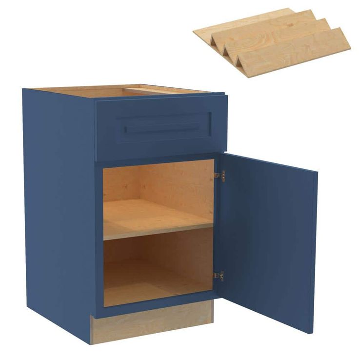 The Grayson Mythic Blue Kitchen Cabinet by Home Decorators Collection combines elegant design with practical functionality. Featuring a transitional Shaker style with a soft-close mechanism and a bold, dark blue finish, it effortlessly enhances any kitchen space. Constructed from MDF and plywood, this cabinet offers durability, sophisticated style, and ease of installation for both pros and DIY enthusiasts.