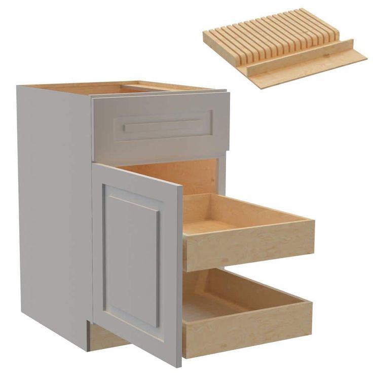 Enhance your kitchen with the Grayson Pearl Gray Base Cabinet by Home Decorators Collection, featuring soft-close technology for a seamless culinary space. Crafted with a durable all-plywood construction, this cabinet includes a convenient knife block and rollout trays, facilitating a custom kitchen experience.