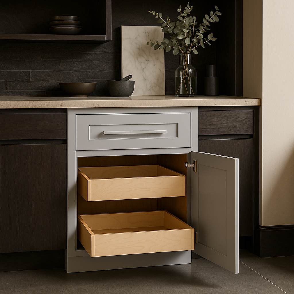 - Soft Close Mechanism: Doors and drawers close softly to prevent slamming and prolong cabinet life.