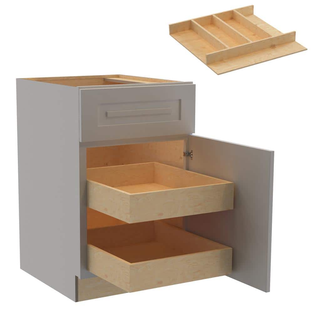 The Grayson Pearl Gray Kitchen Cabinet by Home Decorators Collection combines modern elegance with functional design. Crafted from durable plywood, it features soft-close mechanisms, adjustable shelves, and dovetail drawers for optimal organization and longevity.