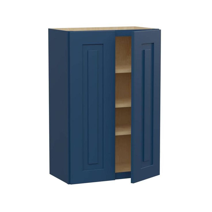 The Home Decorators Collection Grayson Wall Kitchen Cabinet in Mythic Blue combines timeless style with practical functionality. The cabinet features a modern shaker design with soft-close doors, ensuring quiet operation while adding a touch of luxury. Crafted with durable plywood, it promises long-lasting performance, making it a perfect addition to any kitchen makeover.