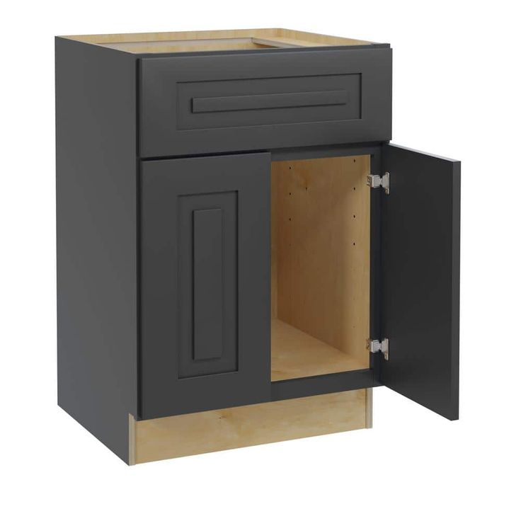 Elevate your kitchen with the Grayson Sink Base Cabinet in Deep Onyx by Home Decorators Collection. This premium assembled cabinet features a transitional shaker style with soft-close doors and all-plywood construction for durability. Its deep onyx finish provides a sleek, modern look perfect for any decor.