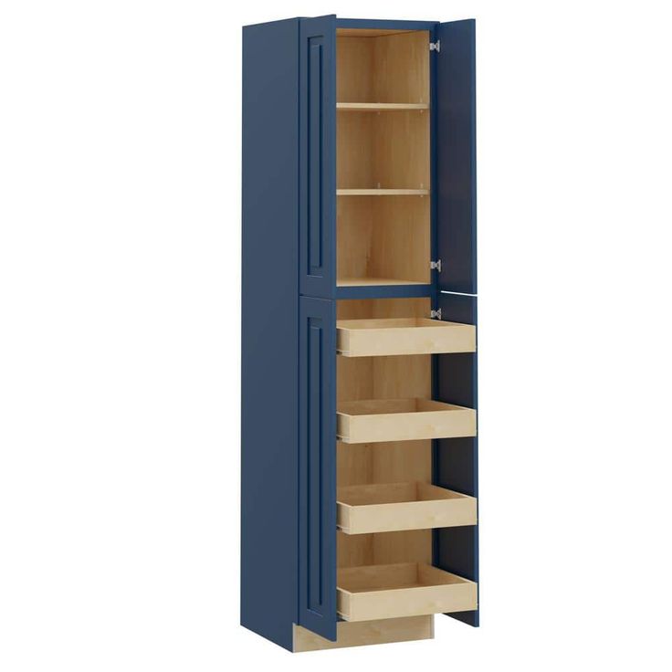 Home Decorators Collection Grayson 24 in. W x 24 in. D x 90 in. H Assembled Plywood Pantry Kitchen Cabinet in Mythic Blue with 4ROT Soft Close
