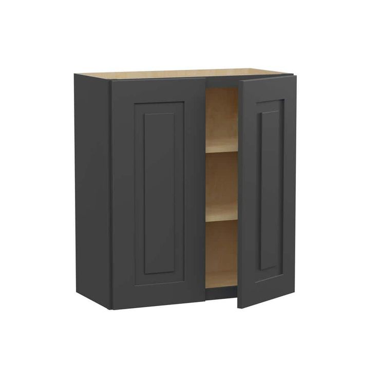 Upgrade your kitchen with the Grayson Deep Onyx Wall Kitchen Cabinet by Home Decorators Collection. This assembled plywood cabinet boasts a striking deep onyx finish and transitional shaker door style. The soft-close feature ensures quiet and seamless operation, making it both a functional and elegant choice for any kitchen.