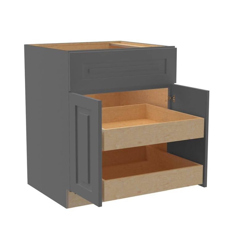 The Grayson Deep Onyx Base Kitchen Cabinet by Home Decorators Collection combines modern elegance with functional design, featuring soft close doors and drawers for a silent, smooth operation. Its premium plywood construction ensures durability while the sleek Deep Onyx finish offers a contemporary touch to any kitchen setting.