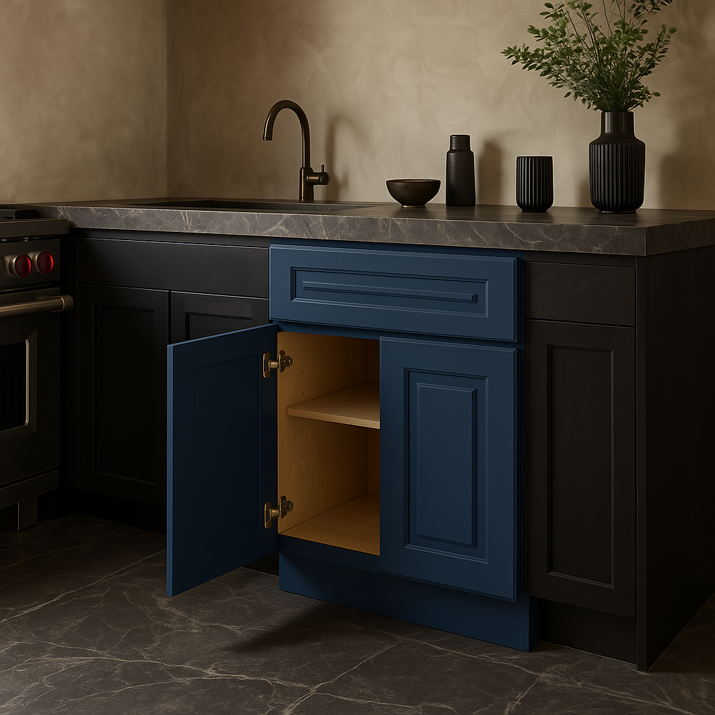 The Grayson Cabinet, clad in its exquisite Mythic Blue, transforms any kitchen into a realm of refined elegance. Its standout feature, the sleek soft-close drawers, whispers luxury while offering unyielding practicality. Style this piece as a striking contrast against neutral tones or as a harmonious complement to a colorful palette. It is not merely a cabinet; it's an essential facet of grandiose culinary spaces.