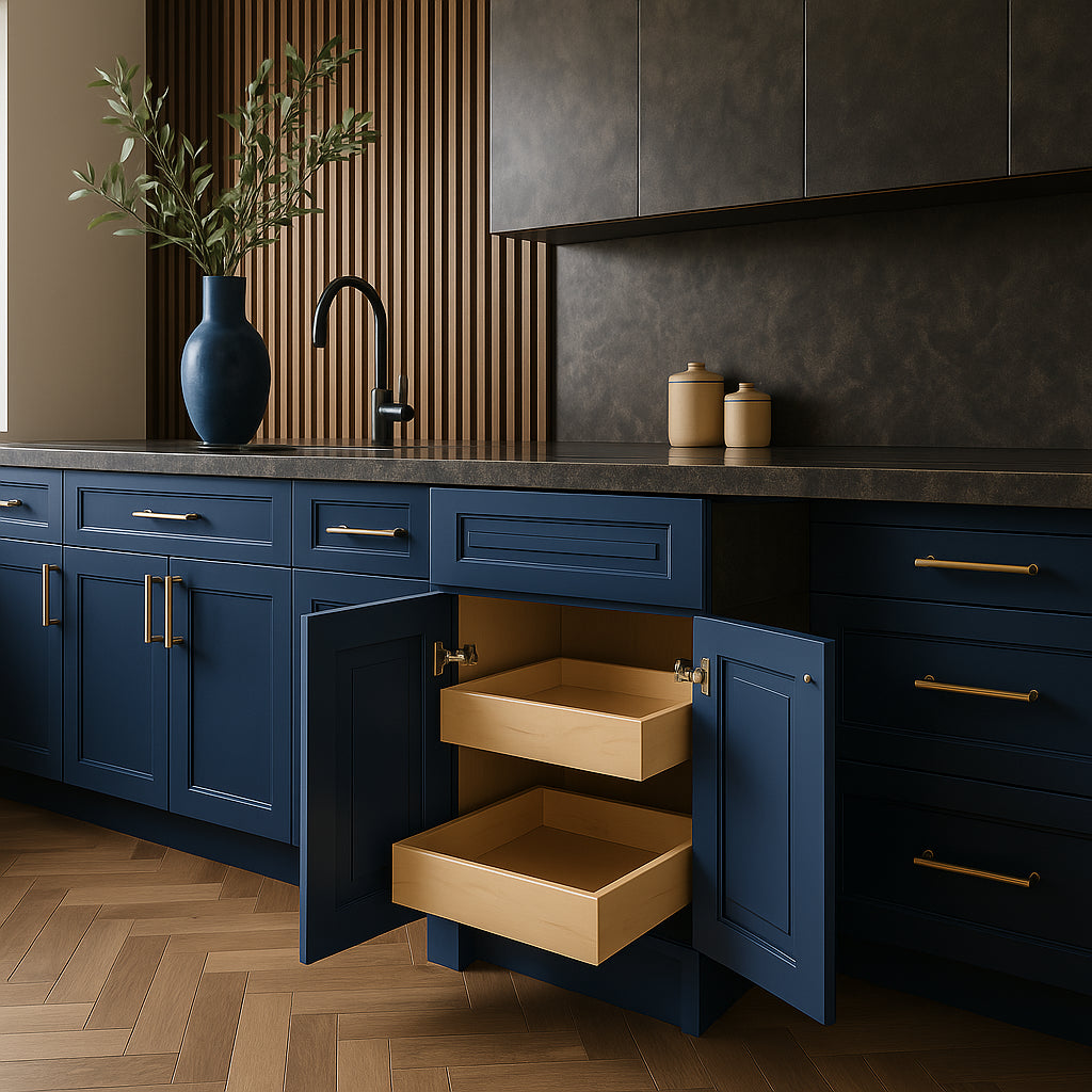- Soft-Close Features: Equipped with soft-close doors and drawers for a quiet, seamless kitchen experience.