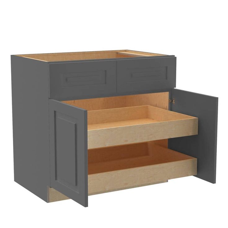 The Grayson Deep Onyx base kitchen cabinet from Home Decorators Collection offers a sophisticated style, blending durability with a fashionable deep onyx finish. This assembled cabinet features soft-close doors and drawers for a seamless kitchen experience, while the plywood construction ensures exceptional strength and longevity.