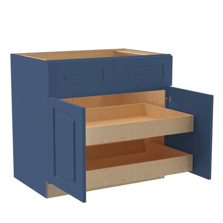 Elevate your kitchen aesthetic with the Grayson Kitchen Cabinet in Mythic Blue. This plywood base cabinet features a sophisticated, dark blue Shaker-style design with MDF doors and soft-close technology for a seamless, quiet experience. Its durable all-plywood construction promises longevity, combining style with functionality for any home kitchen project.