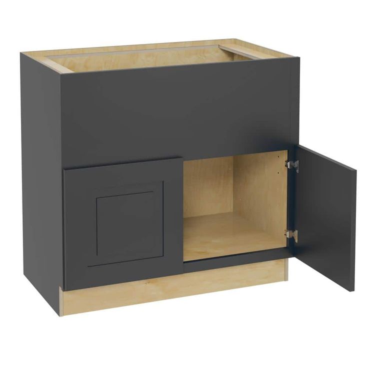 The Grayson 36" Farm Sink Base Cabinet in Deep Onyx by Home Decorators Collection delivers classic elegance with its Shaker style design and bold dark gray finish. This cabinet is crafted from high-quality plywood for exceptional durability, featuring soft-close doors and a sophisticated look that complements any kitchen decor.