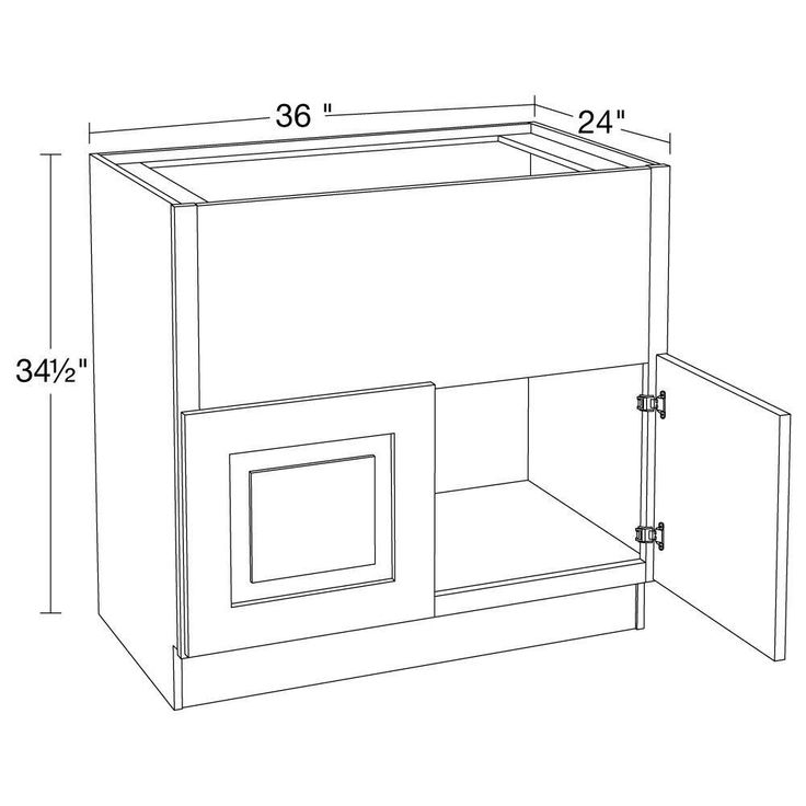 A: The cabinet measures 36 inches in width, 24 inches in depth, and 34.5 inches in height.