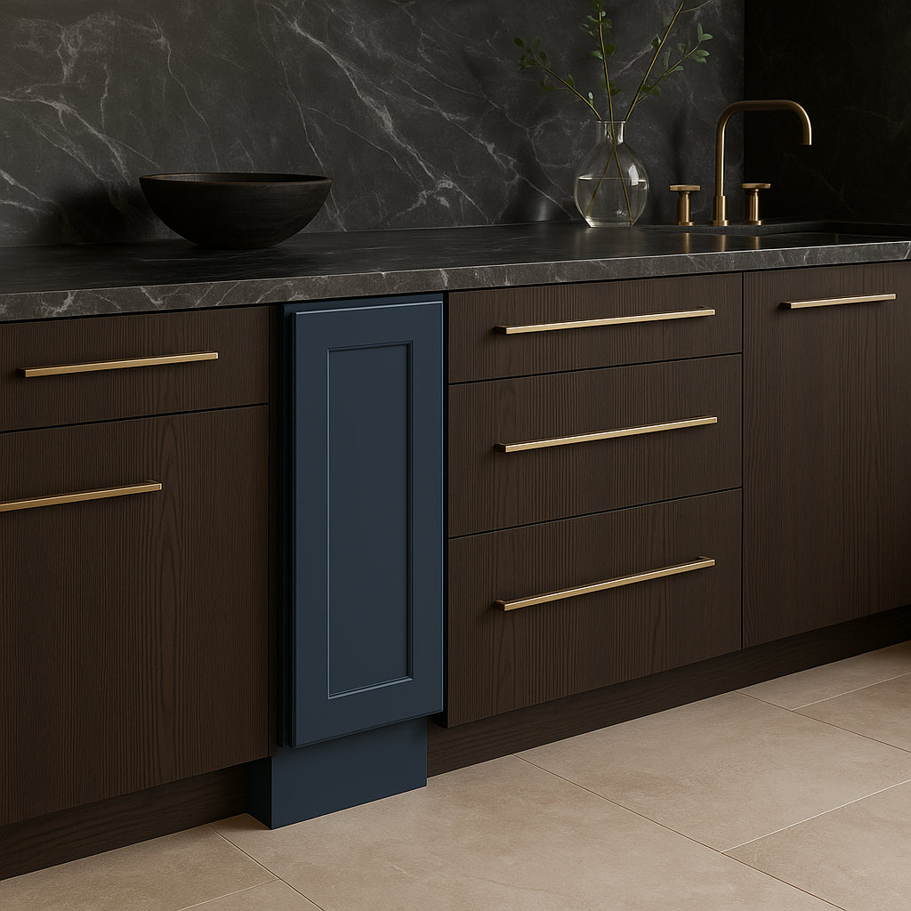 The Grayson Base Kitchen Cabinet in Mythic Blue combines robust plywood construction with a refined painted finish, offering durability and style. Featuring soft-close doors and adjustable shelves, this cabinet is designed for convenience and elegance.