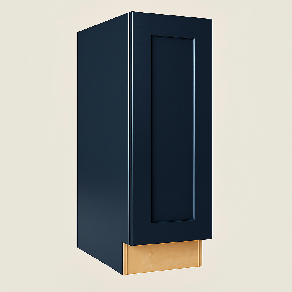 The Grayson Base Kitchen Cabinet in Mythic Blue is a masterpiece of modern design, blending functionality with aesthetic appeal. Its deep blue finish exudes sophistication, while the full-height door and adjustable shelves offer versatile storage solutions. Pair it with gold hardware for a striking contrast or complement it with neutral tones for a balanced look. This cabinet is not just a storage unit; it's a statement piece that elevates the ambiance of any kitchen.