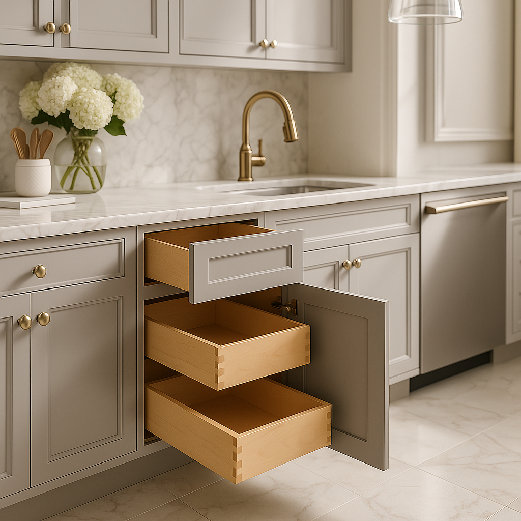 - Soft-Close Functionality: Includes soft-close drawers and concealed hinges for seamless, quiet operation.