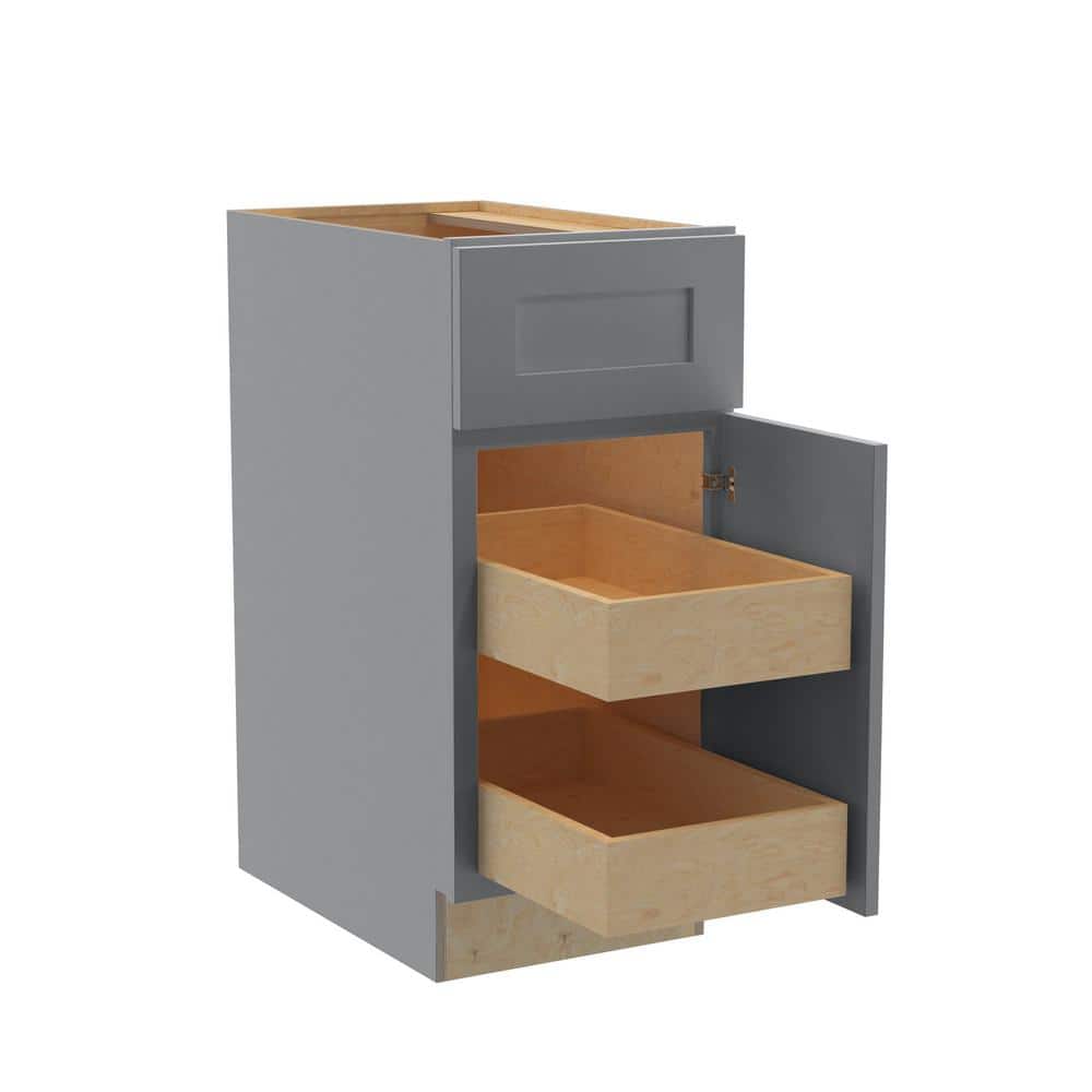 The Newport Pearl Gray Base Kitchen Cabinet combines durable plywood construction with a sleek shaker-style design. Its soft-close features and adjustable shelves make it a practical and stylish addition to any kitchen.