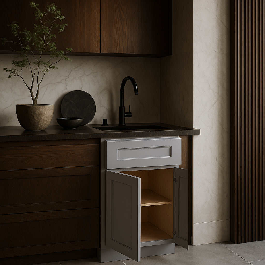 The Pearl Gray Shaker Base Cabinet is a masterpiece of modern design, blending functionality with timeless aesthetics. Its shaker-style doors and drawers exude a clean and sophisticated charm, perfect for elevating any kitchen space. Pair it with contrasting hardware or natural wood tones to create a striking visual impact. This cabinet is not just a storage solution but a statement piece that embodies luxurious living.