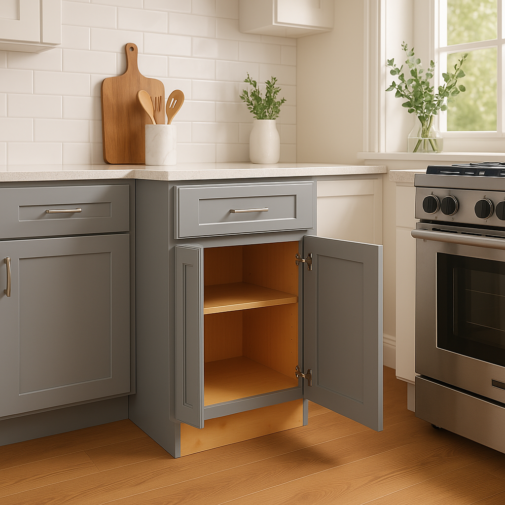 The Pearl Gray Shaker Base Kitchen Cabinet combines modern design with durable construction. Featuring soft-close mechanisms, adjustable shelves, and a sleek painted finish, it offers both style and functionality for any kitchen.