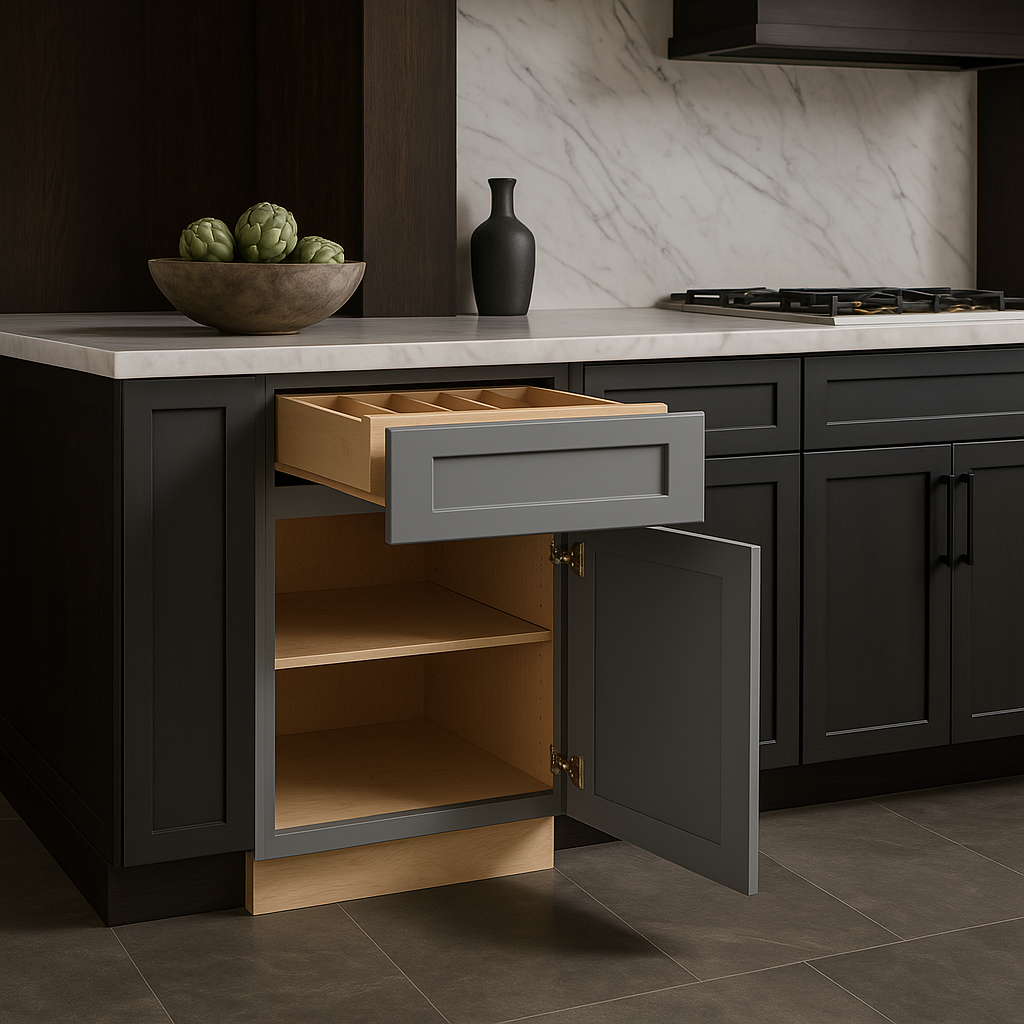 • Soft-Close Efficiency: Quiet soft-close doors and full-extension drawer runners.