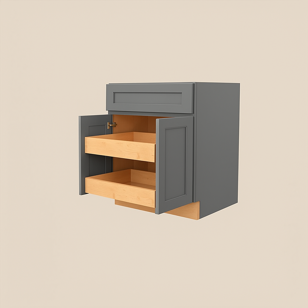 - Ample Storage: Includes 3/4-inch thick full-depth adjustable shelves and 2 rollout spice trays for maximizing space.