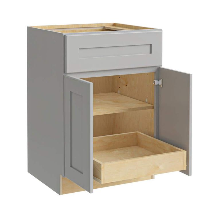 • Style: Shaker-style doors with a modern pearl gray finish for elegance.