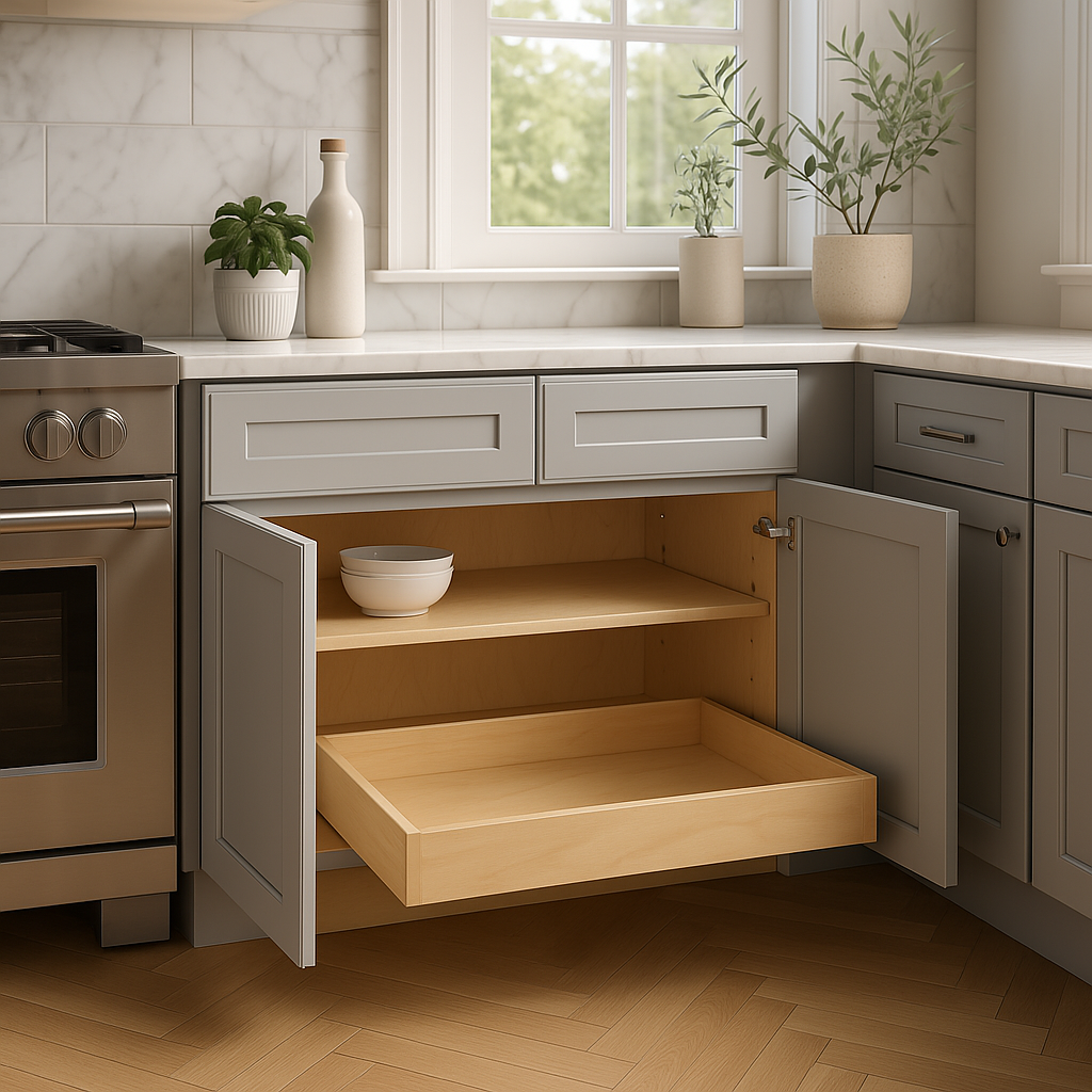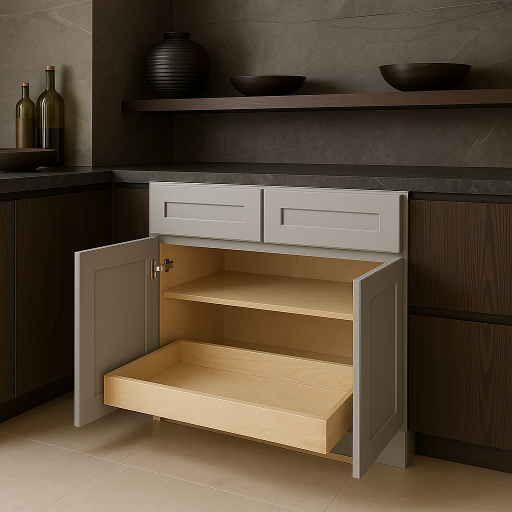 - Geometric Shaker Design: Shaker-style doors with 3-inch wide frames bring a modern, structured look.