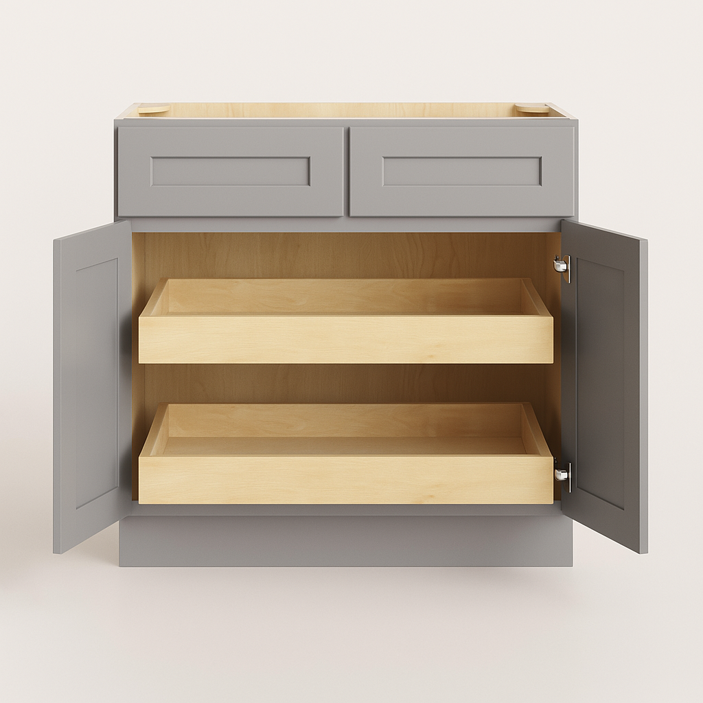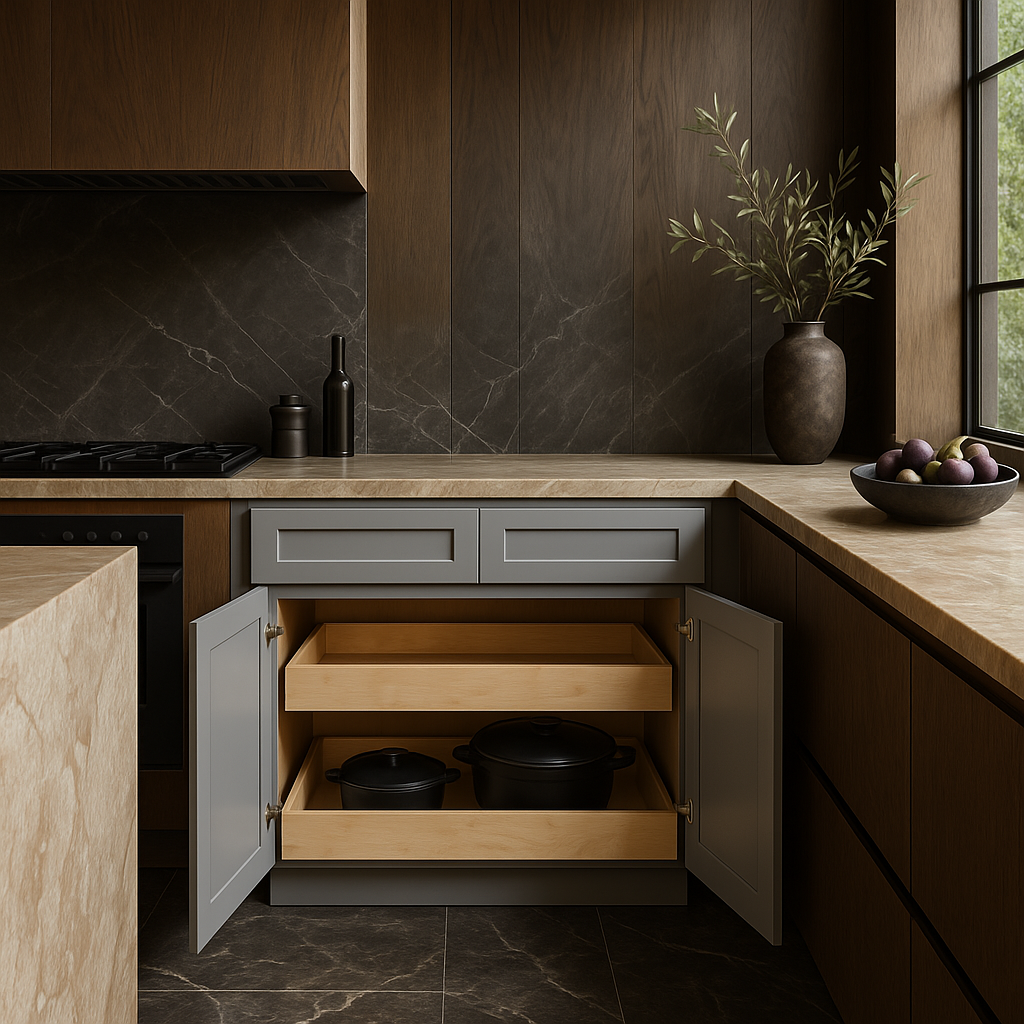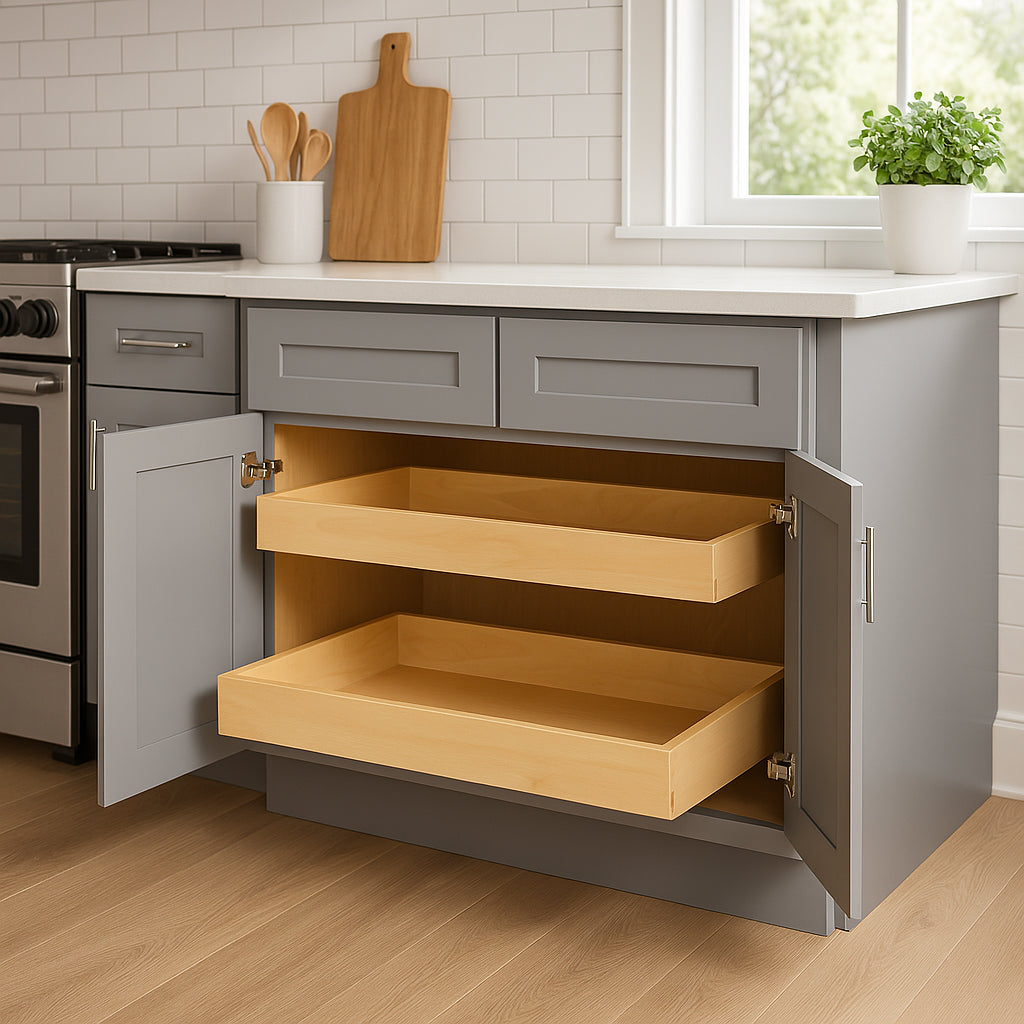 • Soft-Close Technology: Features soft-close mechanisms on doors and drawers for smooth and quiet operation.