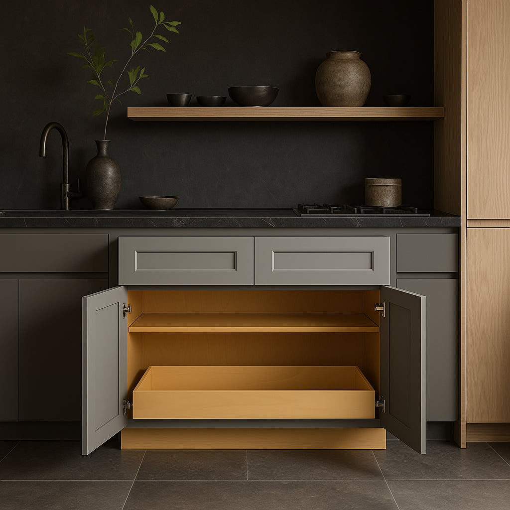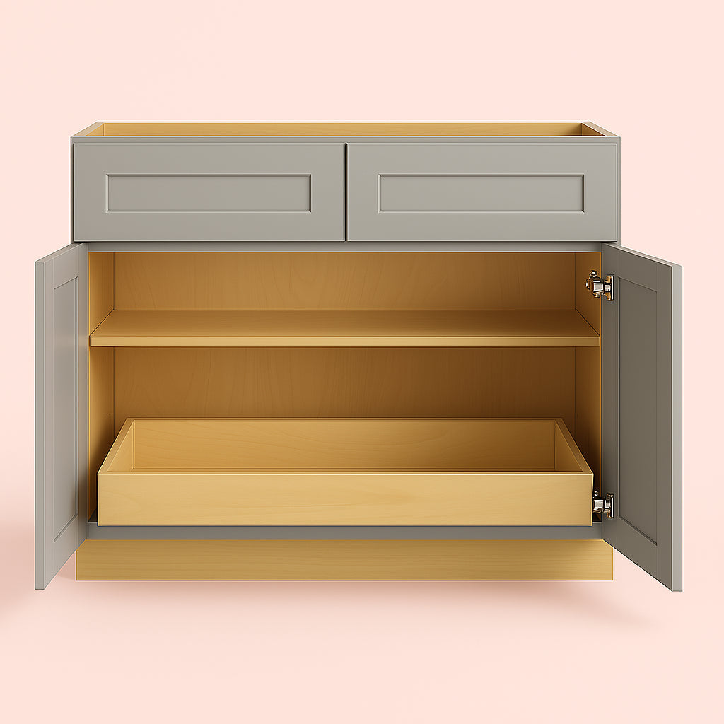The Newport Base Kitchen Cabinet combines durable all-plywood construction with a multi-step painted Pearl Gray finish. Featuring shaker-style doors and soft-close technology, it offers both style and functionality for a modern kitchen.