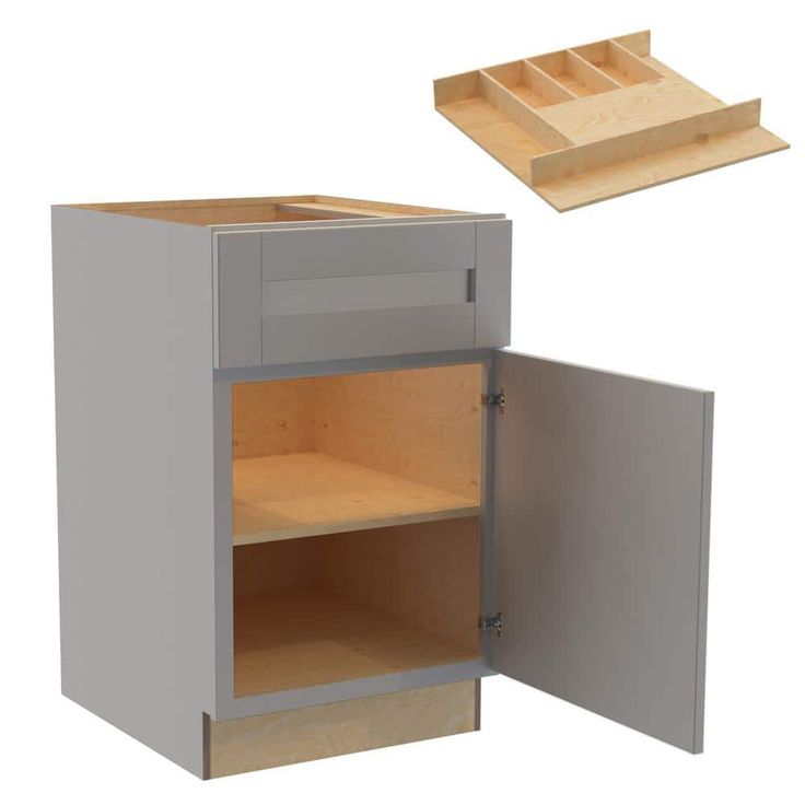 Veiled Gray Shaker Base Kitchen Cabinet with Cutlery Tray