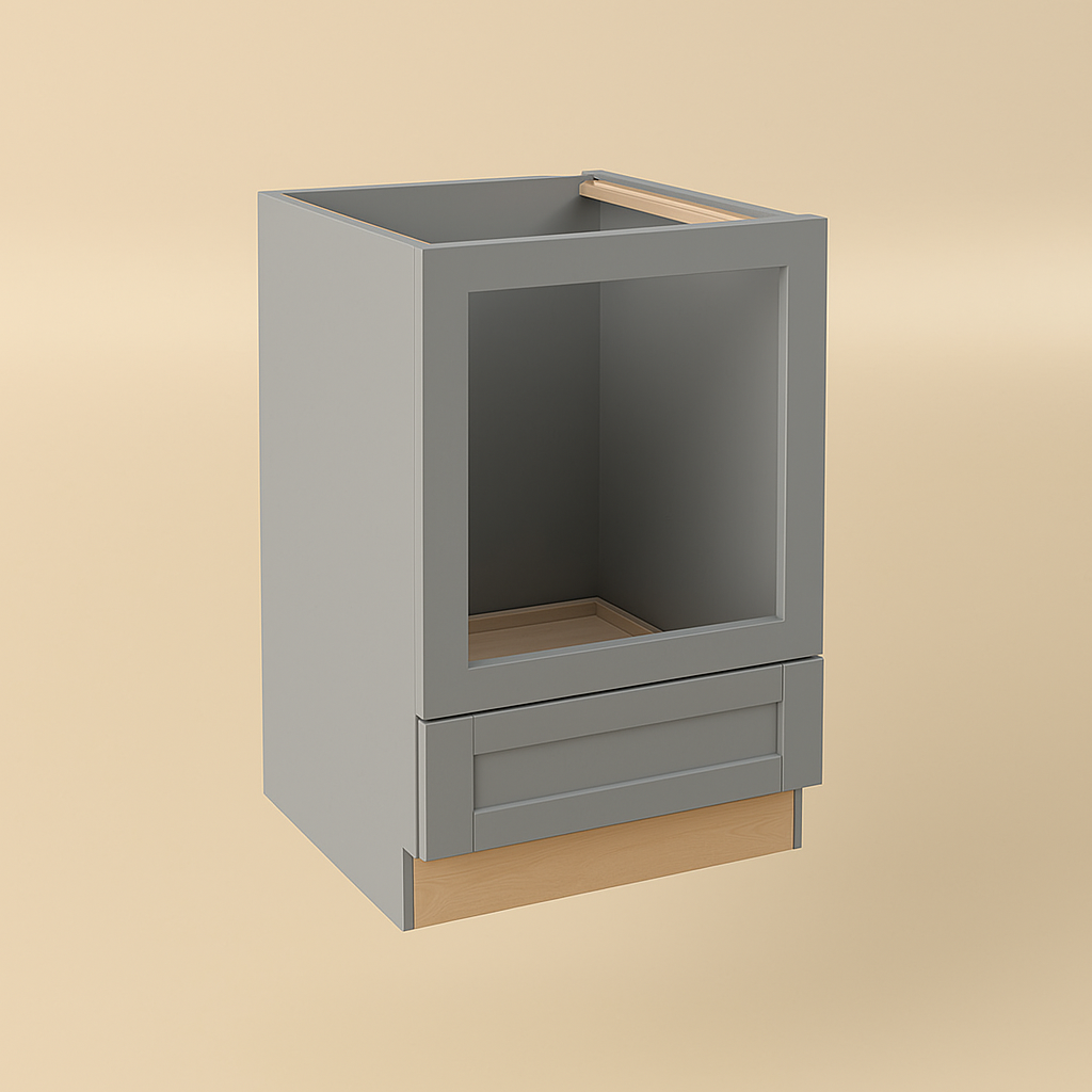 The Washington Gray Thermofoil Kitchen Cabinet combines durable plywood construction with a sleek veiled gray finish and soft-close technology, offering timeless Shaker-style sophistication and effortless functionality.