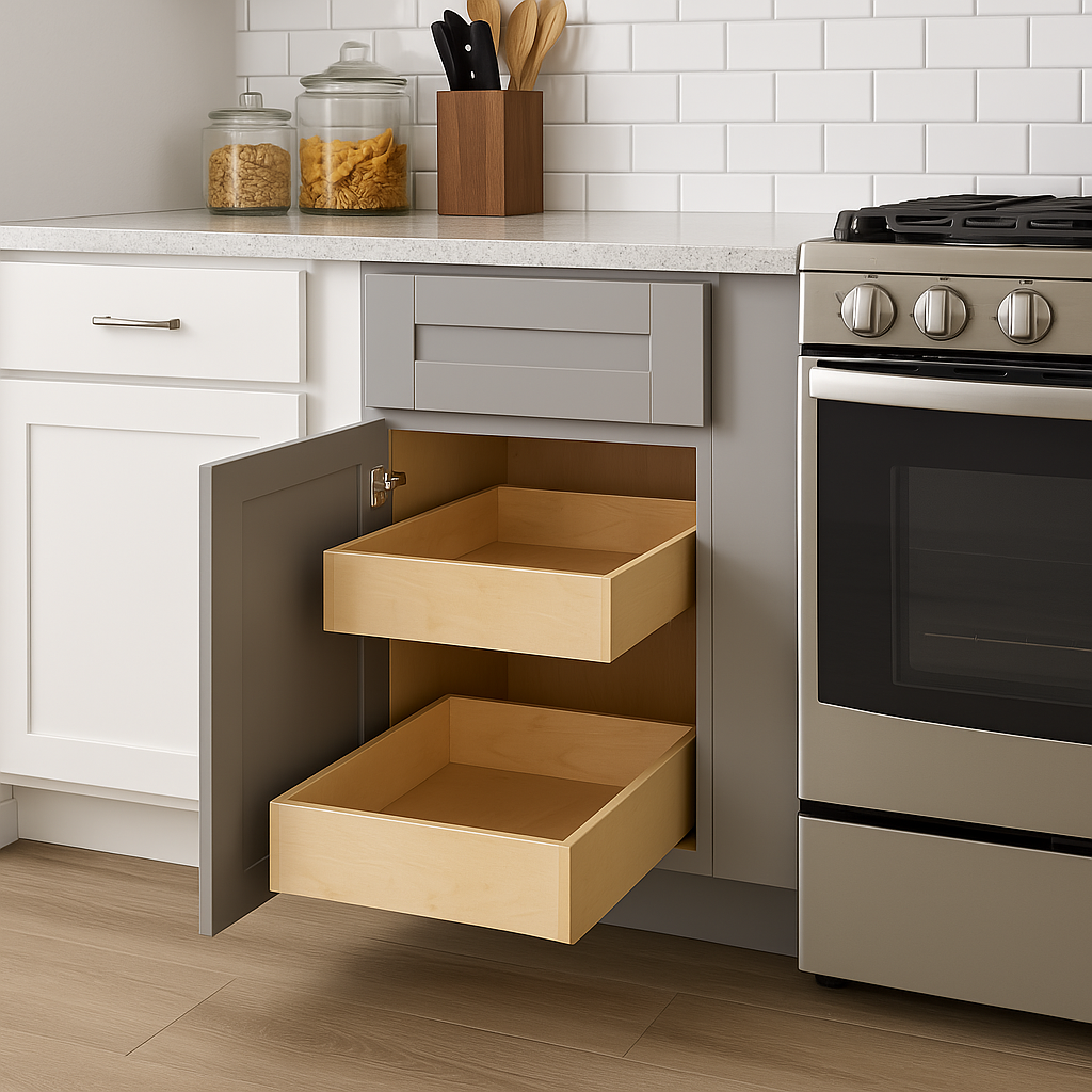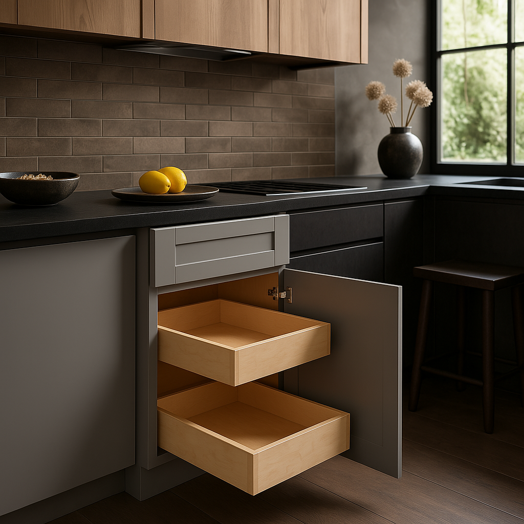 • Soft-Close Mechanism: Includes soft-close doors and drawers for a quieter kitchen environment.