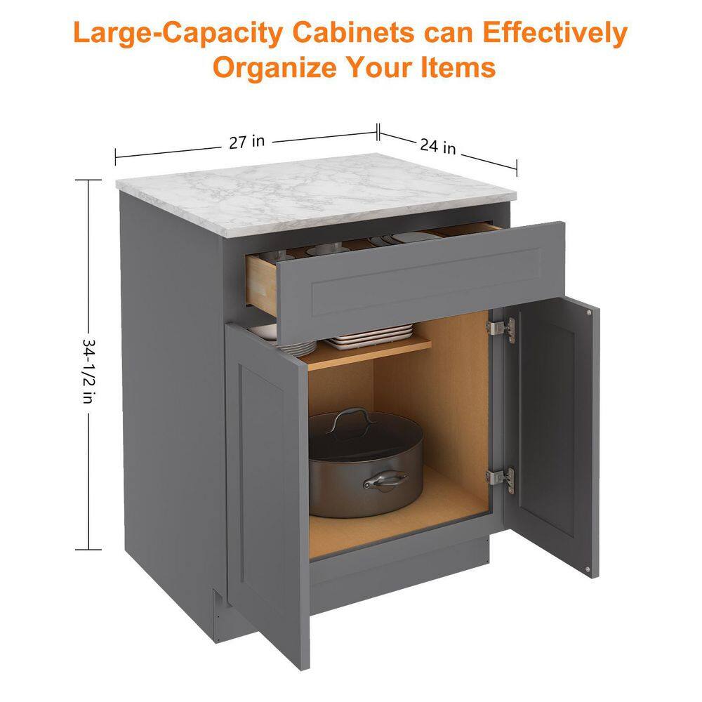 HOMEIBRO 27 in.W x 24 in.D x 34.5 in.H in Shaker Gray Plywood Ready to Assemble Base Kitchen Cabinet with 1-Drawer 2-Doors