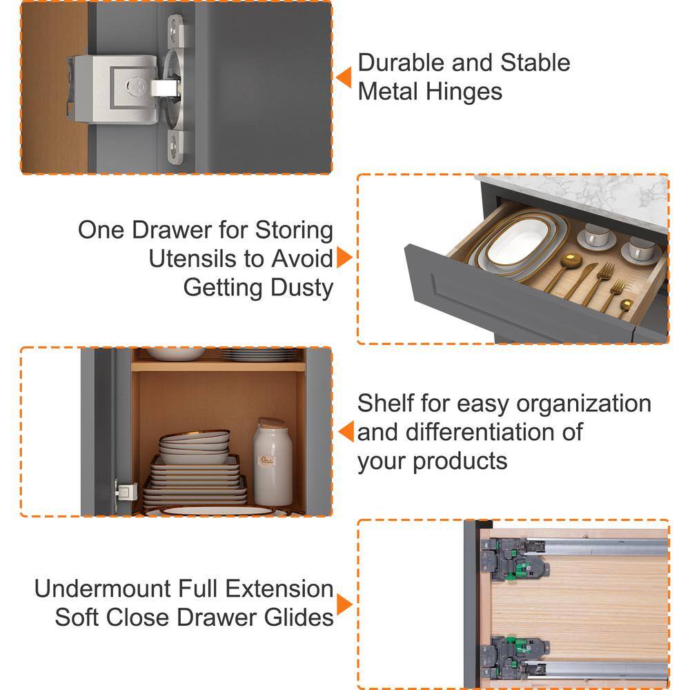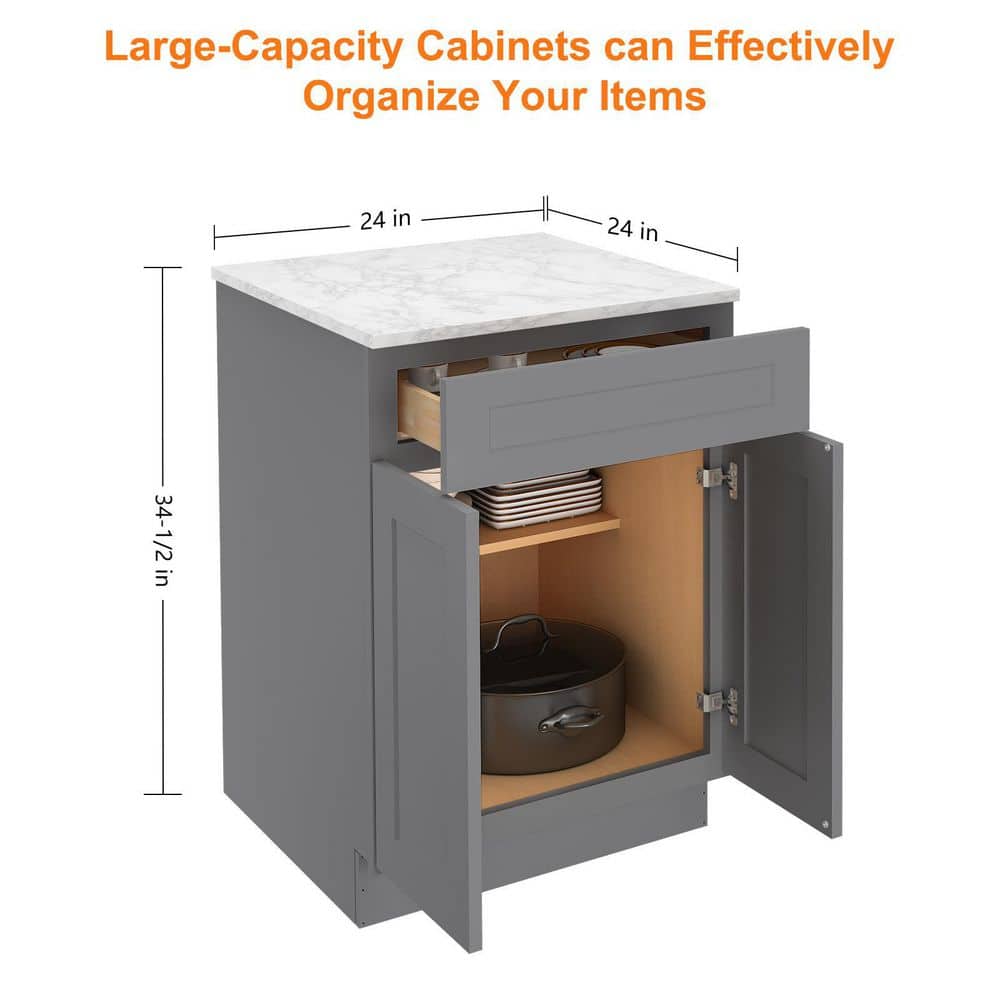 HOMEIBRO Newport Gray Plywood Shaker Style 2-Doors 1-Drawer Base Kitchen Cabinet (24 in.W x 24 in.D x 34.5 in.H)